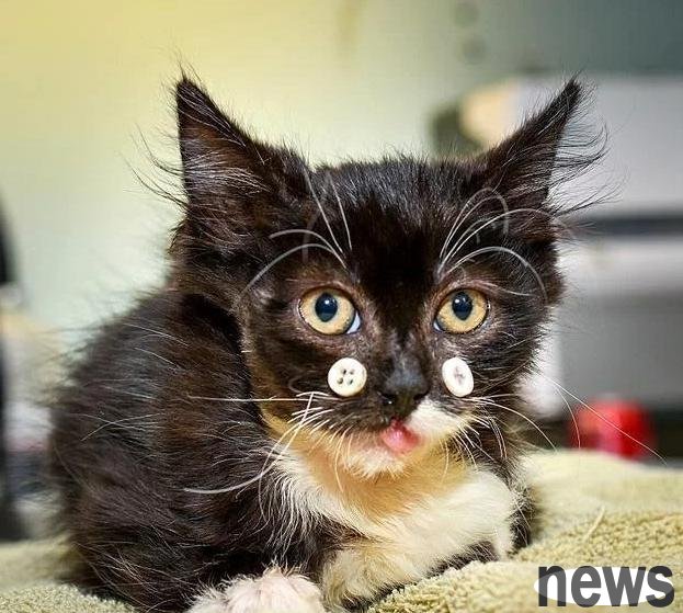 The veterinarian put two buttons on the kitten's cheek, one button is placed on the kitten's chin, and sew them from the inside of the kitten's mouth with thread. The length of the thread is just right, so the kitten can close his mouth normally, and it does not prevent him from eating. The three buttons and wires form a support and stable device, perfectly solving the occlusal problem that originally required multiple surgeries to correct. As the kitten grows, the animal's powerful self-healing ability can gradually heal its injuries.