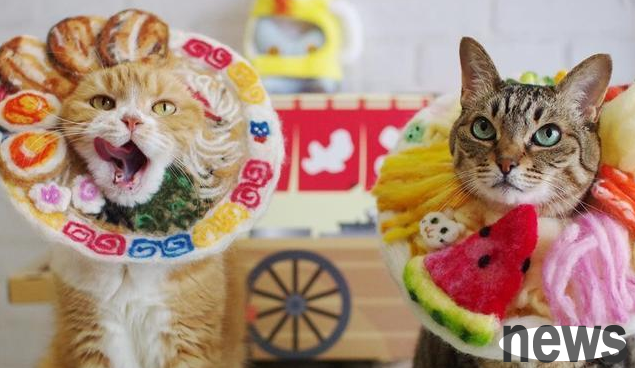 If you don’t tell him, everyone will definitely think that this owner is a big foodie. Because in her photos, the cats are wearing headgear made of wool felt with various foods, such as octopus balls, Japanese ramen, pizza, curry rice...all kinds of delicacies. Although there are many headgear made by others, each one is made unambiguously. You can even clearly identify each ingredient in the "seafood pot". The owner's thoughtfulness goes beyond this. Each headband is tailor-made for each cat owner. So you can see that the fat face of the orange cat is well integrated into the curry rice, and the white cat naturally becomes the white rice in the curry mixed vegetables. These "delicacies" made by the master's skillful hands are enough to open a canteen. What do you want to eat when you are hungry? Japanese ramen or burger? There are also cakes and parfaits for dessert after the meal!