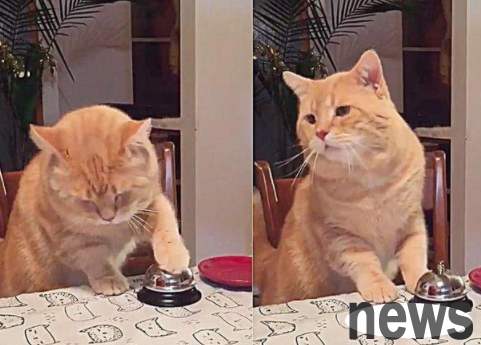 When his new owner brought him a dinner bell, he tried taking it outside to play. But soon Leon figured out that by ringing the bell, his human owners would bring him delicious food. So it quickly became a professional "bell-ringing cat".