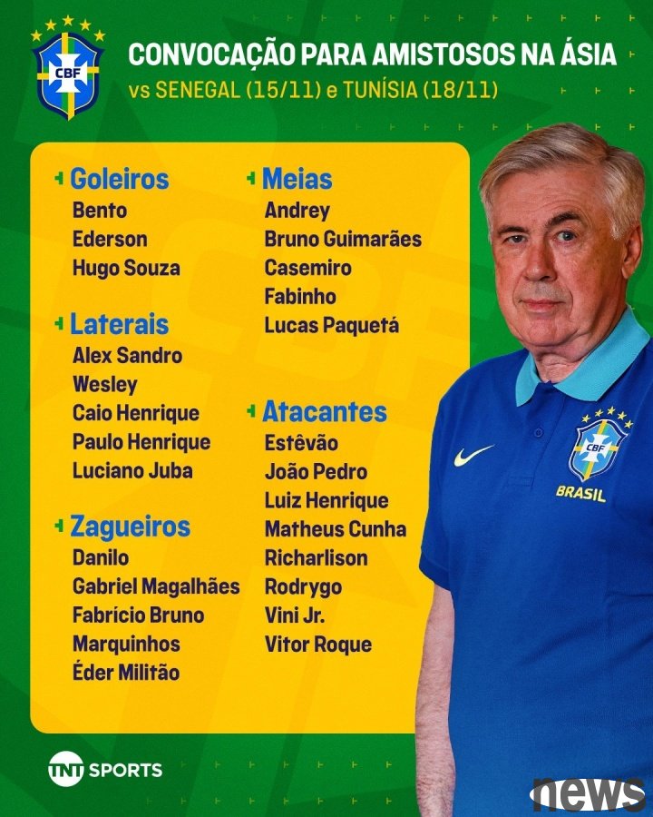 The Brazilian team officially announced this month’s national team roster. Vinicius and Pedro lead the team, with Marquinhos, Rodrygo, Rissarisson, Casemiro and Roque selected. Bruno, who performed at the level of a war criminal against the Japanese team, is still selected. Neymar is still out.
