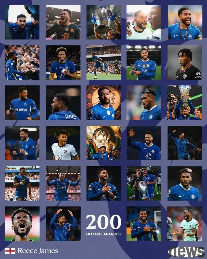 Chelsea posted a poster on its official website and wrote: "Reece James is a pure-blooded Chelsea man who scored in the 200th game milestone."