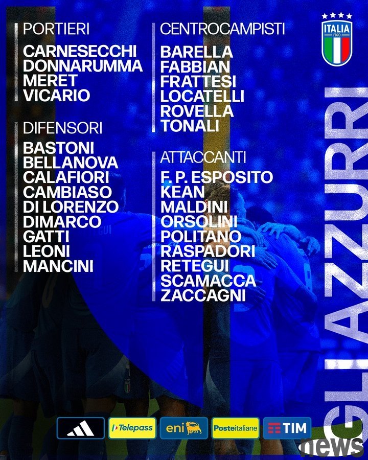 Italy announced the new national team list, and Leoni, Fabian and Esposito were selected for the first time, which was also Gattuso's first appearance in coaching the Italian team.