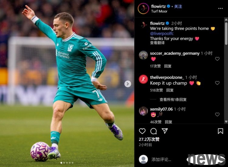 After the game, Liverpool midfielder Wilz updated his social media, posted photos of this game, and wrote: We will bring three points home, thank you for the energy you bring.
