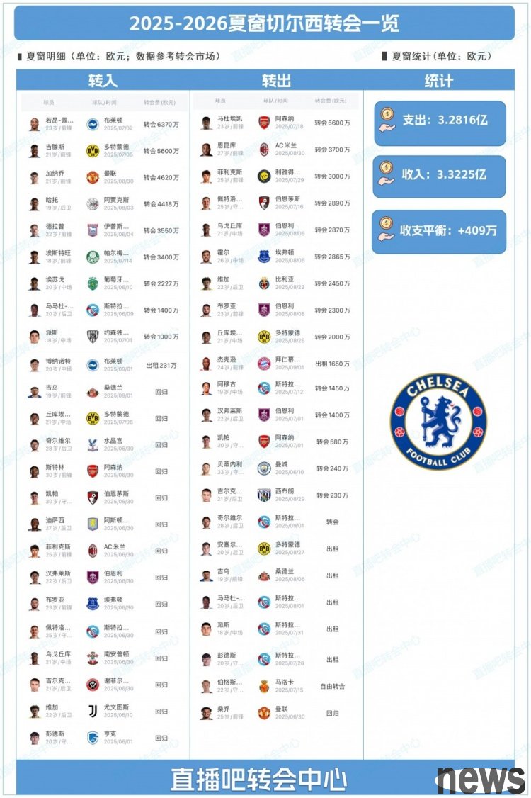 328 million euros were invested to introduce 9 players, and 23 players sold to earn 332 million euros. Chelsea is not only the Premier League team with the largest personnel changes in this summer window, but also one of the few teams in the league that can strengthen the lineup and achieve profitability. They have completed such a miracle for the second consecutive year. In the summer window of 2024, Chelsea's recruitment expenditure was 239 million euros, and the sales of players earned 198 million euros. The net investment of 40.5 million euros was less than 2/3 of the Premier League teams. Maresca relied on this team to complete the mission of winning the Premier League for the fourth place and the UEFA Europa League. The Club World Cup journey even won them more than 100 million US dollars.