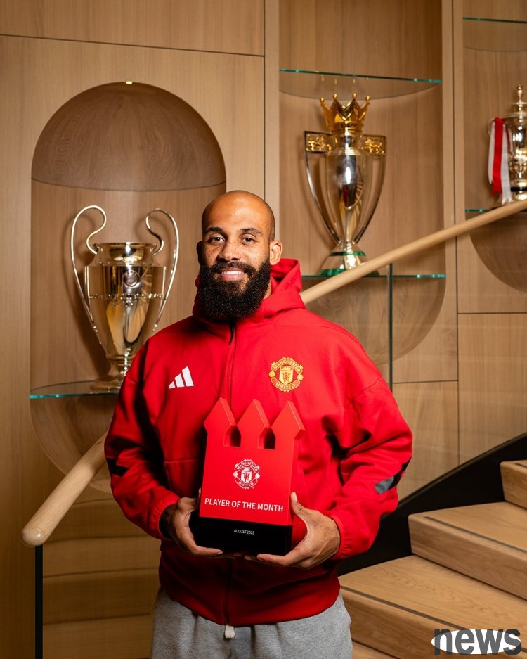 Mbermo received Manchester United's Player of the August trophy, and Manchester United's official social media posted photos to congratulate him.