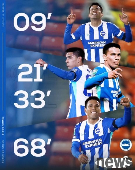 Brighton 6-0 Barnsley in the third round of the League Cup. In this game, Diego Gomez performed a big four-time honor for Brighton.