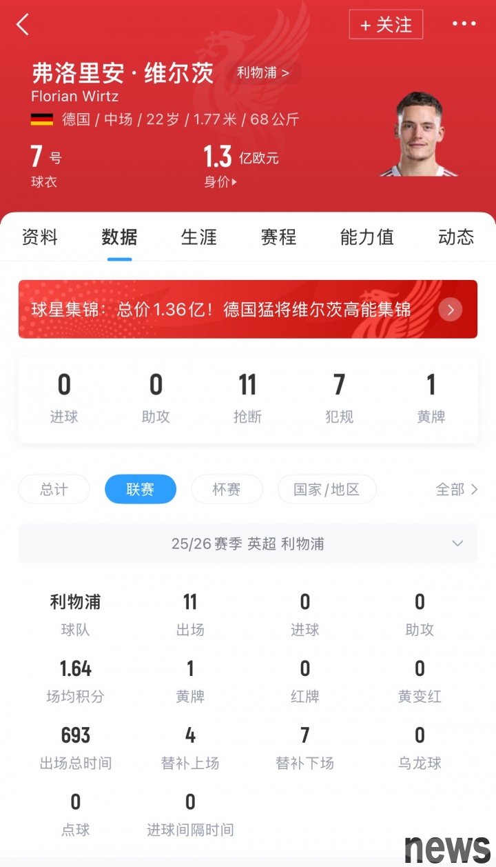 Rolfes said: "Although Wirtz has outstanding personal abilities, his primary characteristic is that he is a team player. Wirtz can shine when working as a team, but the current Liverpool lineup has not been fully integrated, which makes it more difficult for Wirtz to perform."