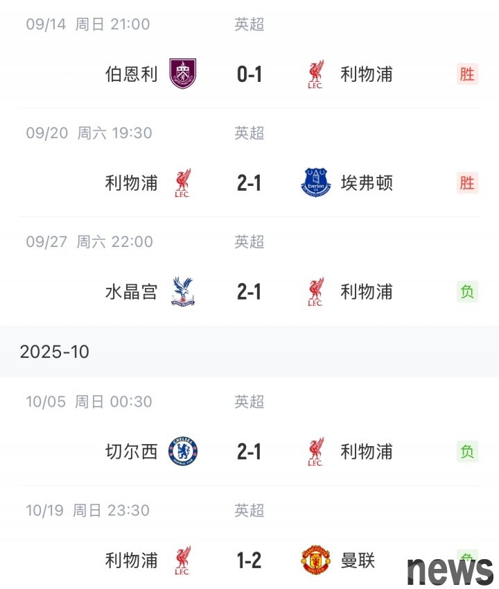 In the 8th round of the Premier League, Liverpool lost 1-2 to Manchester United and fell 4 points behind the top of the league after losing three games in a row.