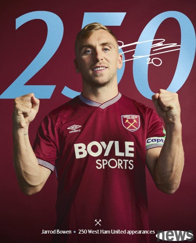 In the 11th round of the Premier League, West Ham United faced Burnley at home. In this game, Hammers forward Bowen started the game and ushered in his 250th milestone game with the team.